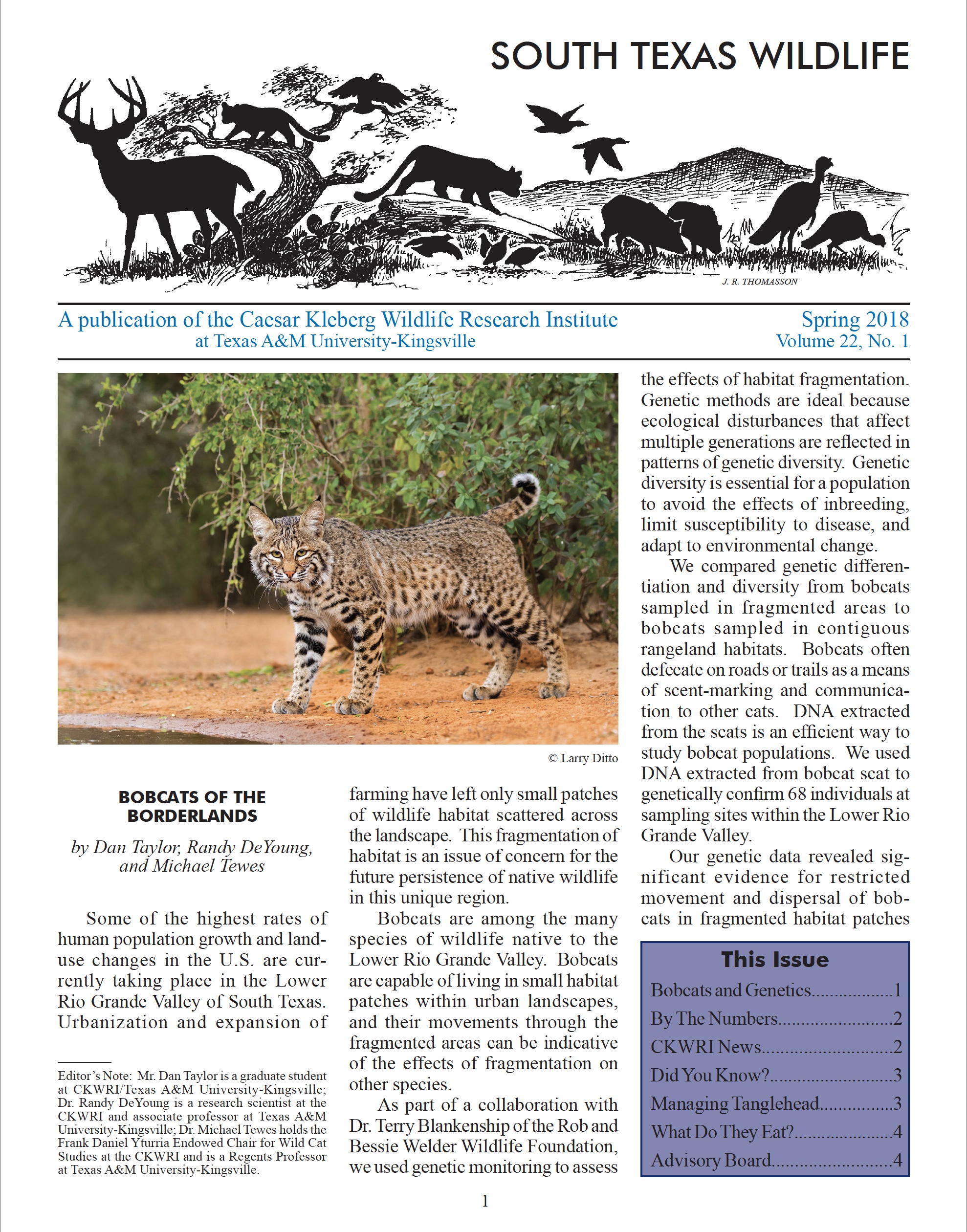 South Texas Wildlife Newsletter Spring 2018 Caesar Kleberg Wildlife Research Institute